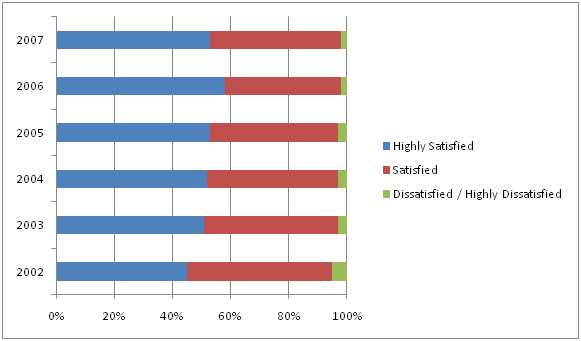 - 90% of consumers say they are satisfied with the quality of care…85% with the quality of staff…83% with the convenience. [Harris Interactive survey of 2,441 adults in March 2007 for the WSJ]