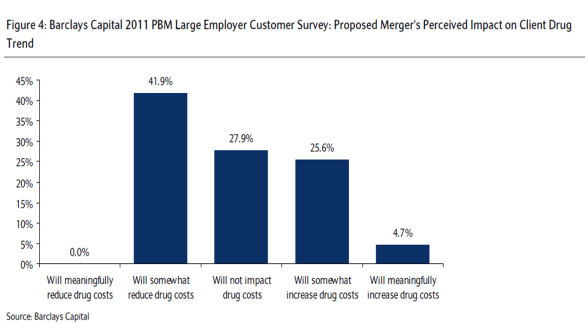 On the other hand, less than 50% see the proposed Express Scripts / Medco acquisition as driving lower costs (which I generally agree with).