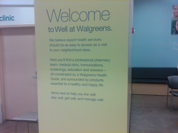 I was in a Walgreens last week in Chicago.  Maybe it’s just a newer store than my local store in St. Louis, but I thought the pharmacy looked very different.  I captured a few shots with my camera phone.  As you can see below: