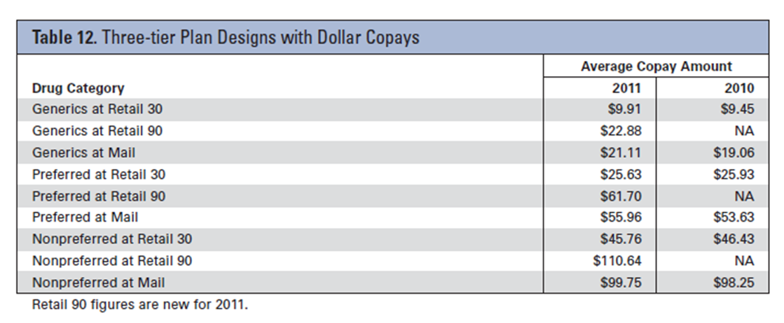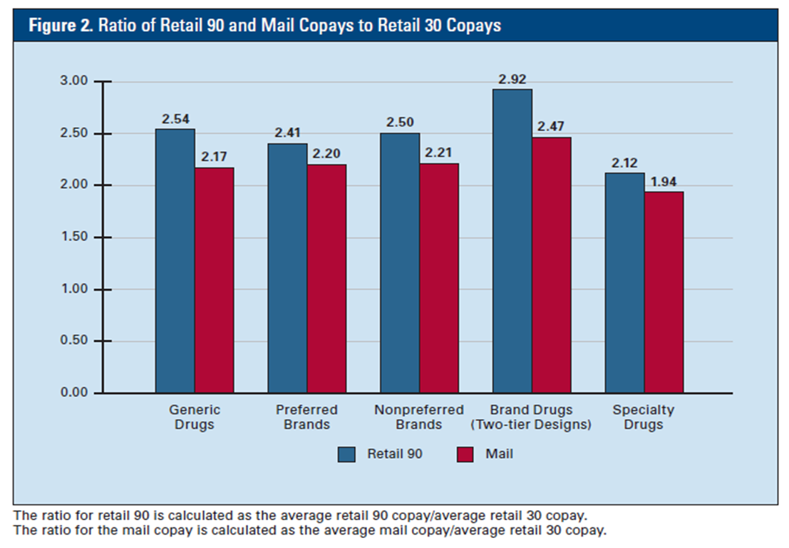 - Nearly 60% of plans allow 90-day retail prescriptions. [Wow! This was a shocker to me.]