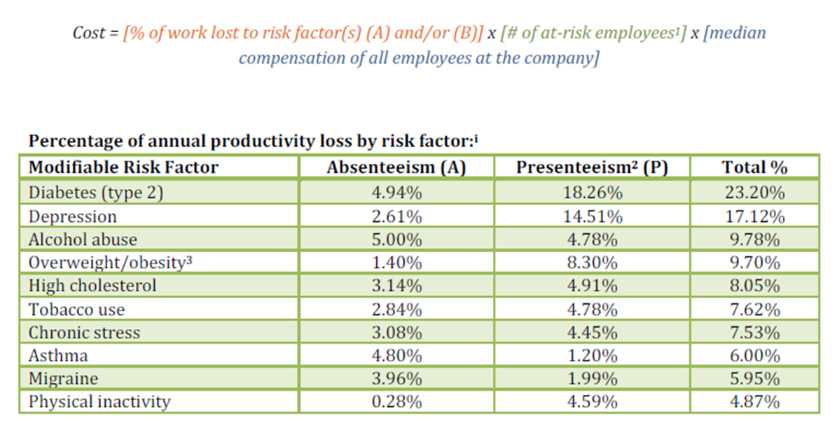 While absenteeism costs are obvious as in sick days paid out, presenteeism is harder to estimate but can have significant costs. Presenteeism occurs when people come to work sick and are not productive.
