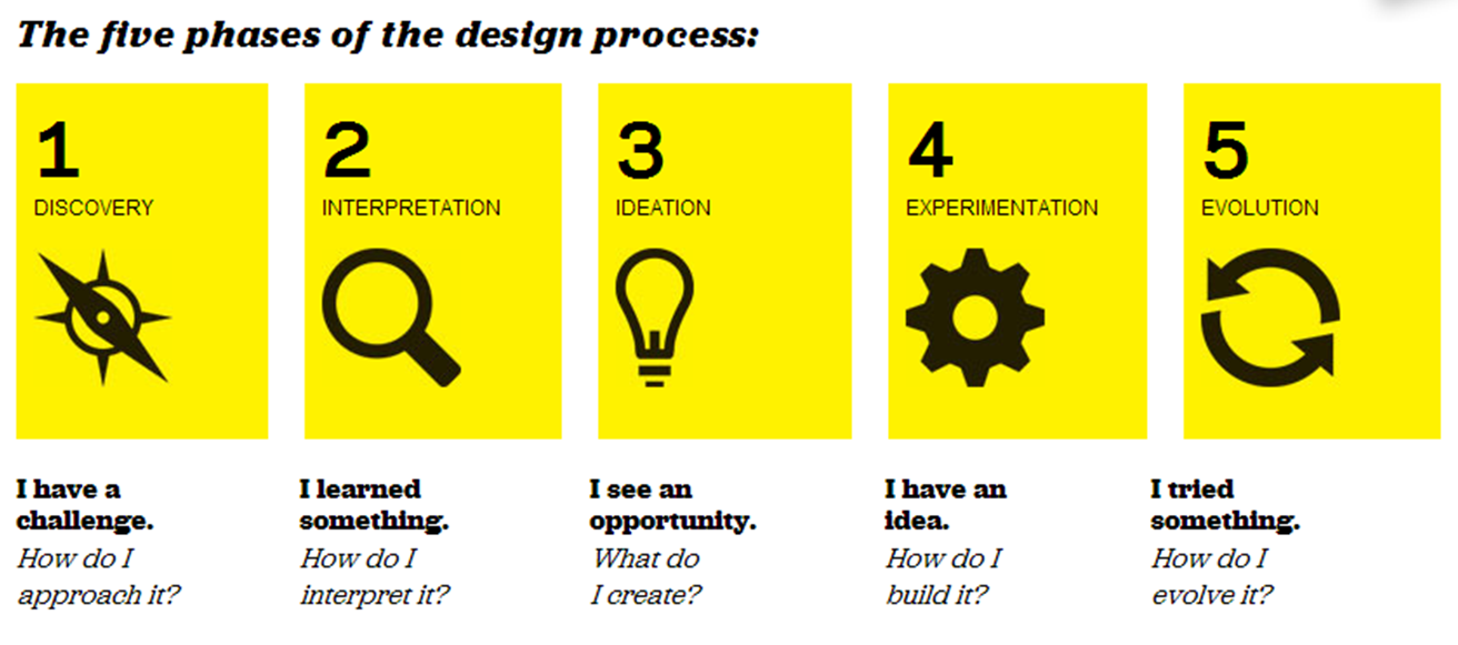 This graphic from the Design Thinking for Educators site (from IDEO) is another good summary.