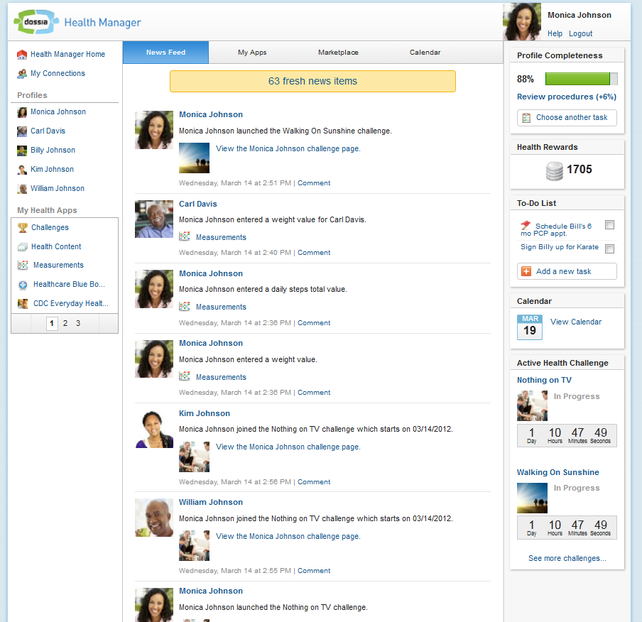 Dossia is an organization dedicated to improving health and healthcare in America by empowering individuals to make good health decisions and become more discerning healthcare consumers. Backed by some of the largest, most respected brands in the world – Applied Materials, AT&T, BP, Cardinal Health, Intel, Pitney Bowes, Vanguard Health Systems, NantWorks and Walmart – Dossia’s founding member companies have united under the common vision of changing healthcare.