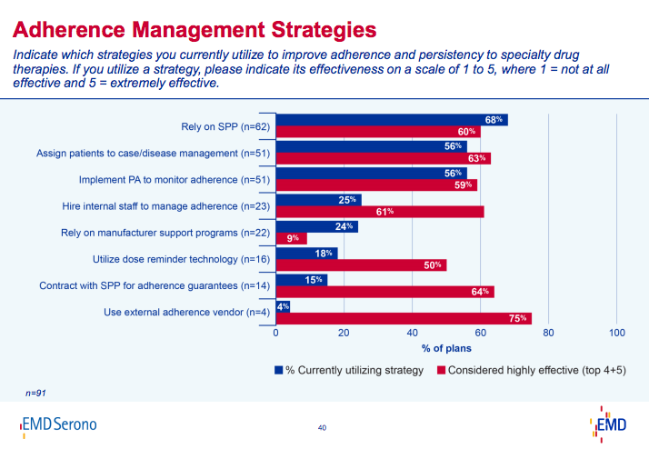 Specialty Connect was a pilot program that won the PBMI Innovation Award this year. What it does is to allow consumers the choice of getting their specialty medications at either the CVS Caremark specialty pharmacy or picking them up at a local store. This is a change since: (1) many pharmacies don’t typically stock specialty medications; (2) many PBMs require use of a specialty pharmacy (i.e., mail); and (3) specialty medications typically require some addition handling and counseling which may be difficult to do at a local store level.