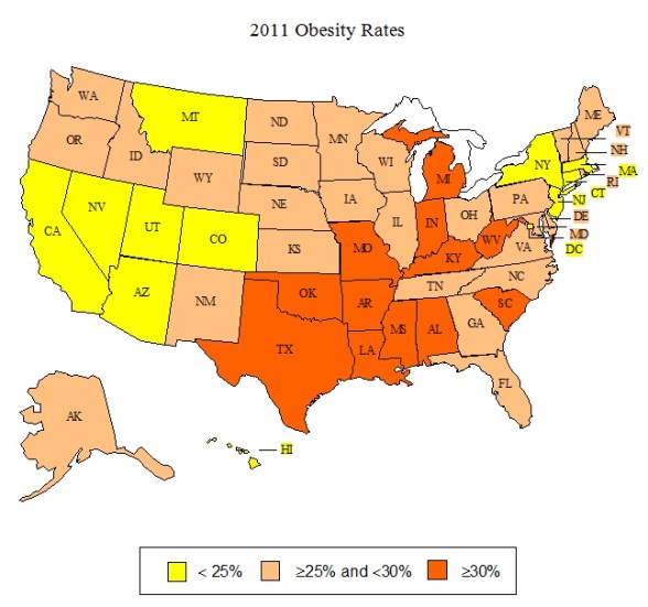 You can’t really call any state “non-obese” these days with every state having at least 20% of their population considered obese and 12 states having over 30% of their population obese.