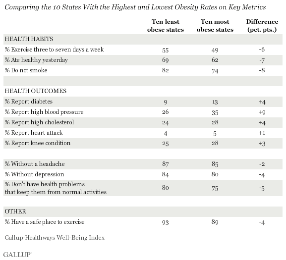 But, in a separate study, I found it interesting to compare some metrics from the most obese to least obese states.  Not surprising.